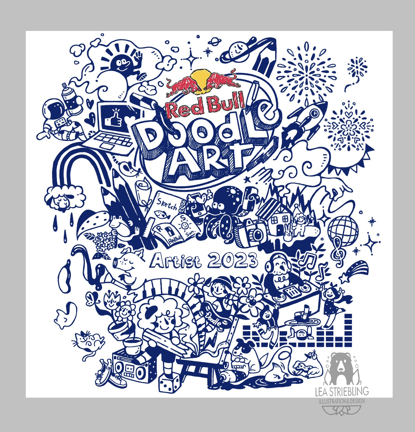 Der Red Bull Doodle Art Contest, ist ein weltweiter Zeichen-Wettbewerb, im Doodle Stil (lockere, skizzenhafte Zeichnungen). Das Thema in 2023 lautete Loving Lifestyle, dazu wurden über 2000 Werke eingesendet.